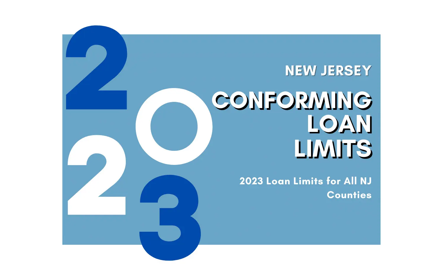 2023 Conforming Loan Limits New Jersey is $726,200 and goes up to $1,089,300 for high-cost counties for one-unit properties.