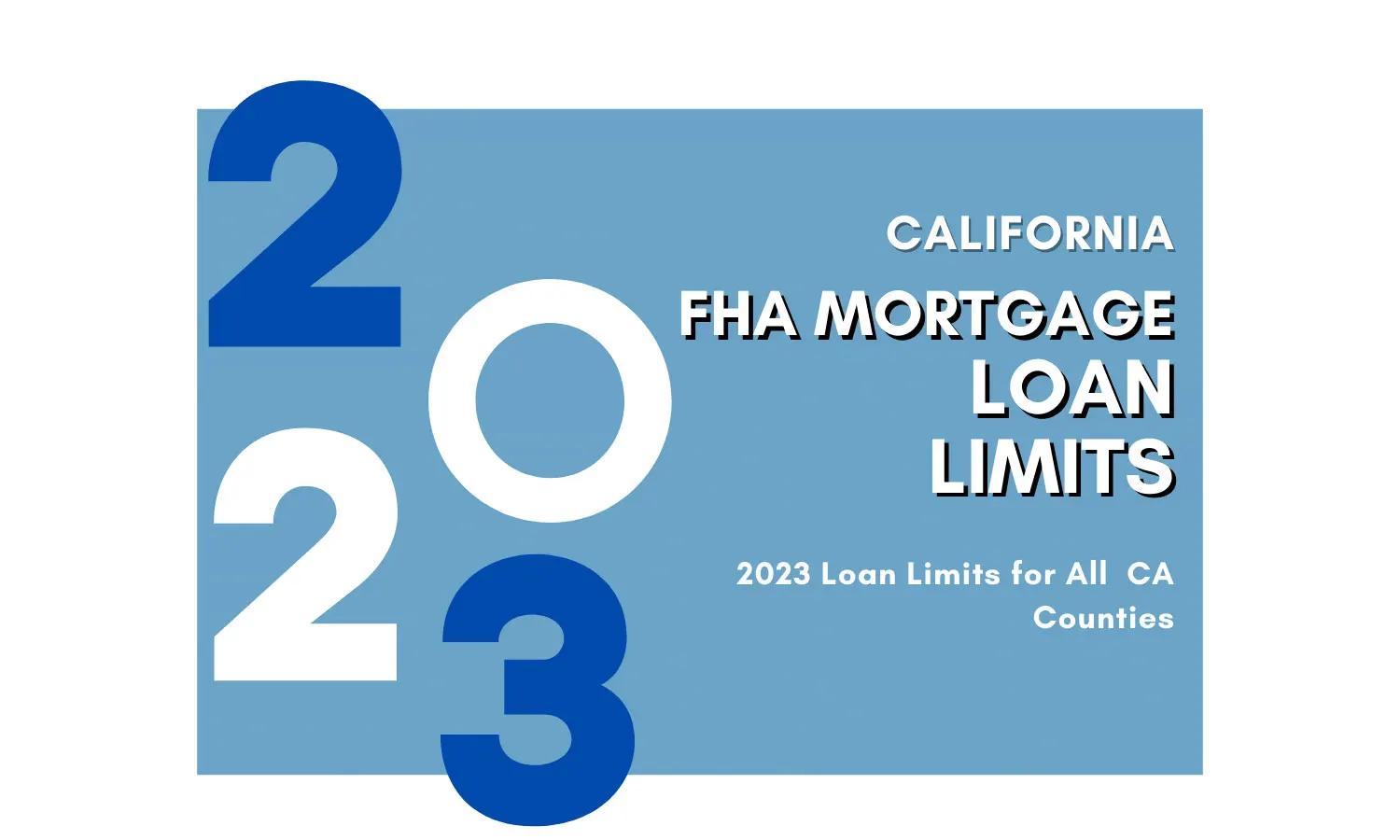FHA Loan Limits 2023 California is $472,030 and goes up to $1,089,300 for high-cost counties for one-unit properties.